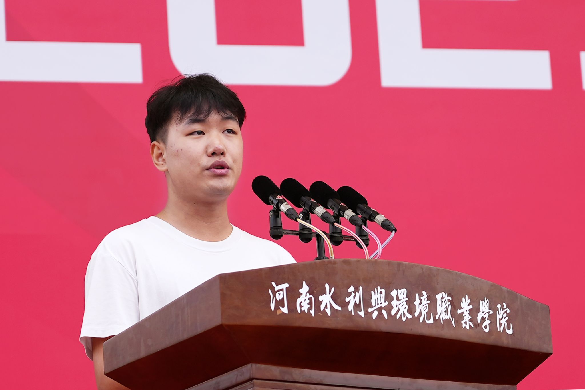 信息工程学院24企信2班的田广雨、土木工程学院24造价2班的崔瑞星同学作为老生代表发言。